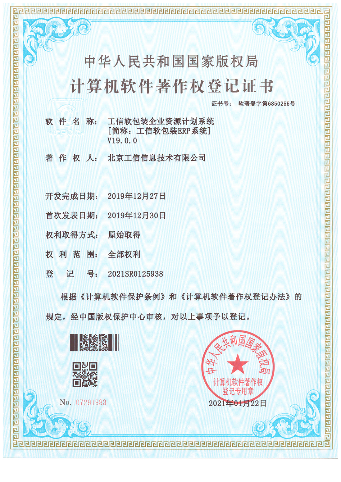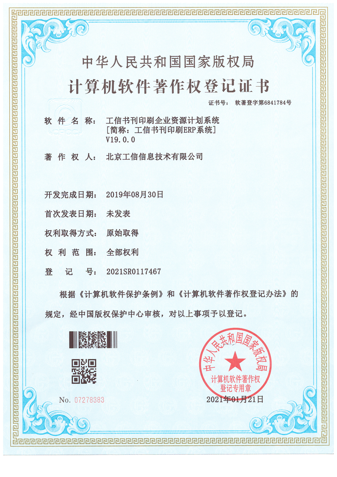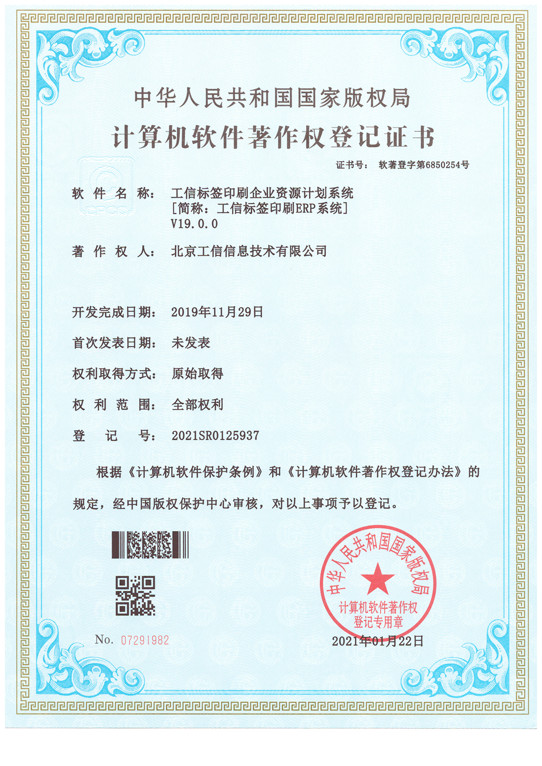 20114月,公司获批与中国地质大学软件学院合作成立了“共青团中央大学生就业创业实习基地”,成为中国地质大学历史上第二个授予市级“共青团中央大学生就业创业实习基地”的公司,进一步加强了公司的技术研发力量。为了保持工信ERP系列产品对印刷行业技术和管理方向的把握,公司与北京印刷学院等全国多所印刷院校,与科印传媒、必胜网等行业媒体及各地印刷协会与设备厂建立了紧密的合作关系,或者成为了会员。此外,公司一直在印刷包装领域研究深耕,截止目前,已拥有19个软件产品的著作权证。